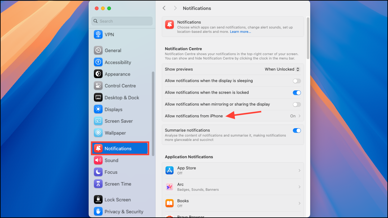 You can also disable the notifications for your iPhone or control which apps to receive notifications from on your Mac.