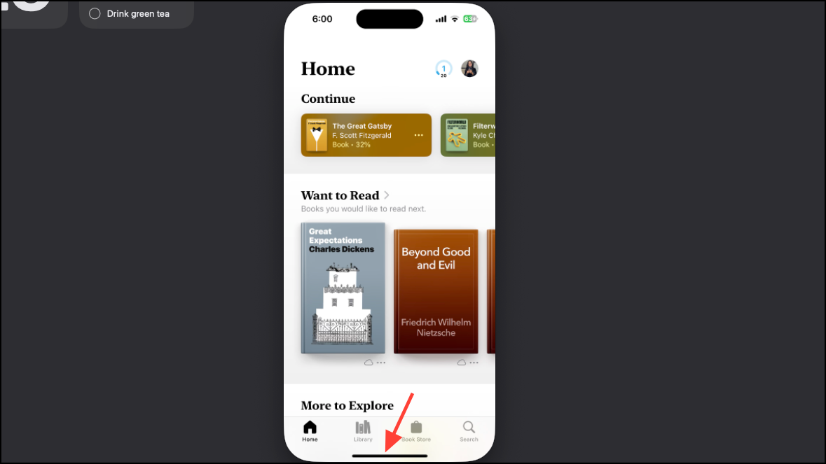 - To get back to the Home Screen from an app, click on the Home bar at the bottom of the screen.