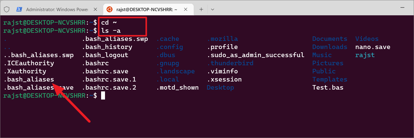 First, check if the .bash_aliases file exists in your system using the below commands:
