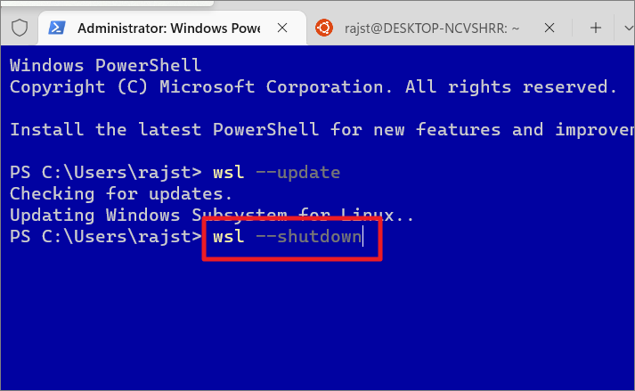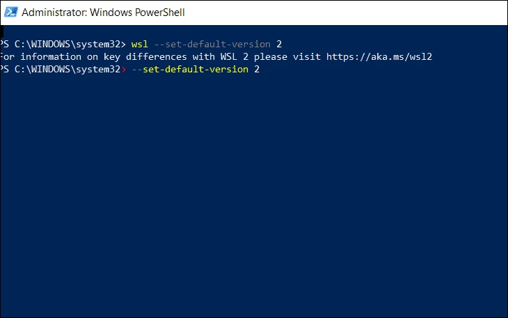 To set WSL 2 as your default version when installing a new Linux distribution, open PowerShell and run the following command:
