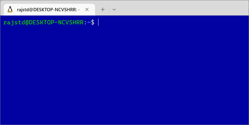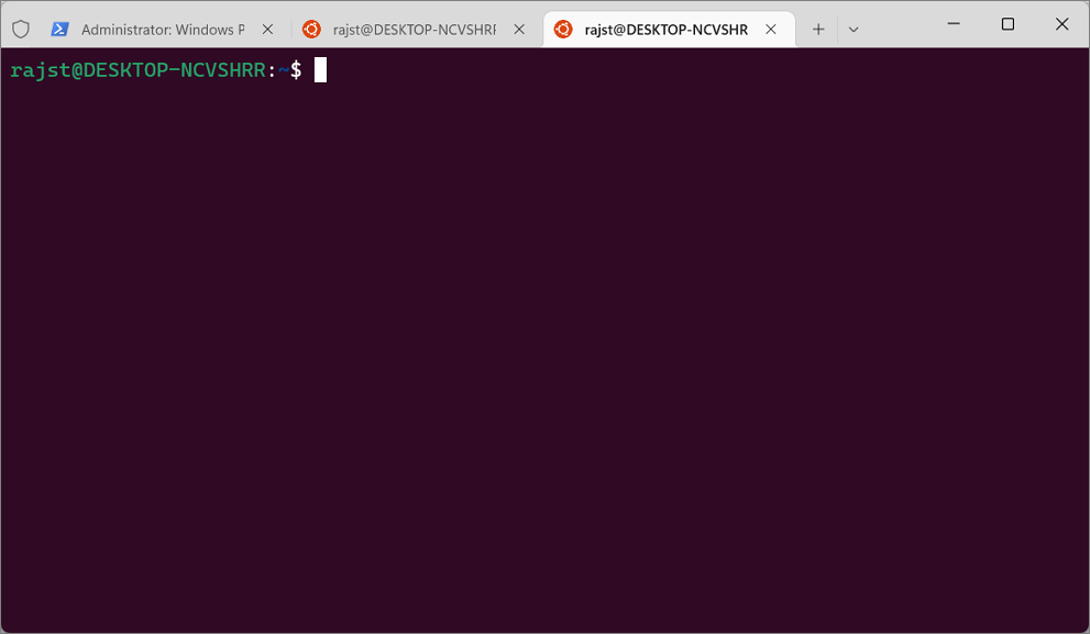 After setting up the username and password, the Ubuntu terminal will launch in a separate terminal window as shown below.