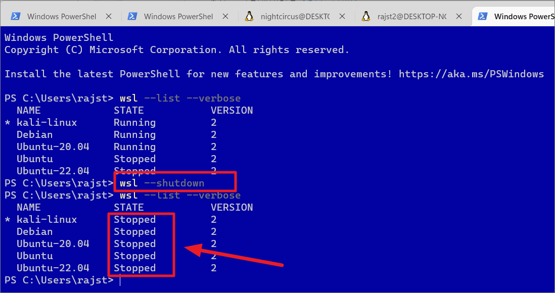 | To terminate or stop a specific distribution from running | wsl –terminate <Distribution Name> |
