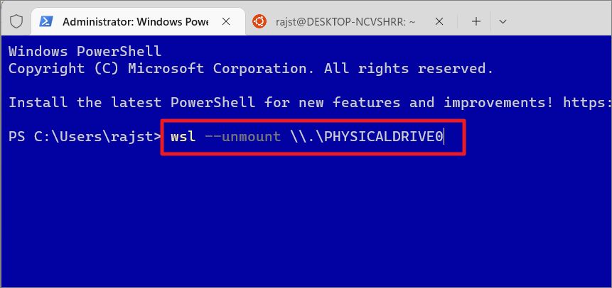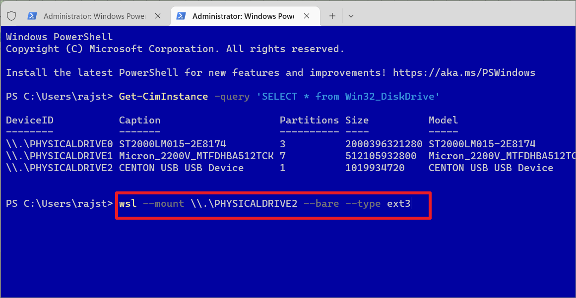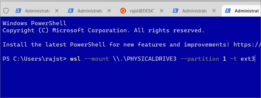 | Mount a disk or device | wsl –mount <DiskPath> |