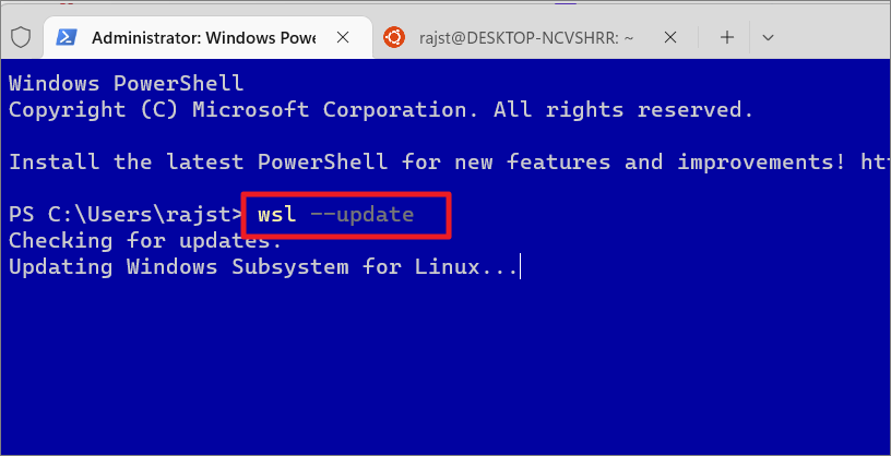 The first step to enabling WSL 2 is enabling the Virtual Machine Platform feature component on Windows. You can also enable WSL 2 via the ‘PowerShell’ command-line tool. To do that, open ‘PowerShell’ as an Administrator and run the following additional command with the WSL 1 command.