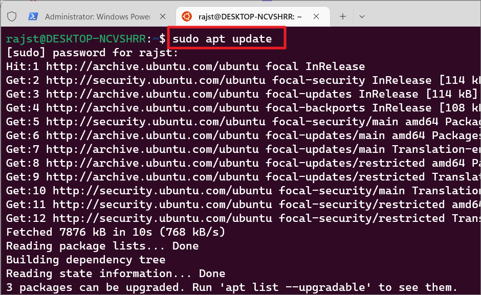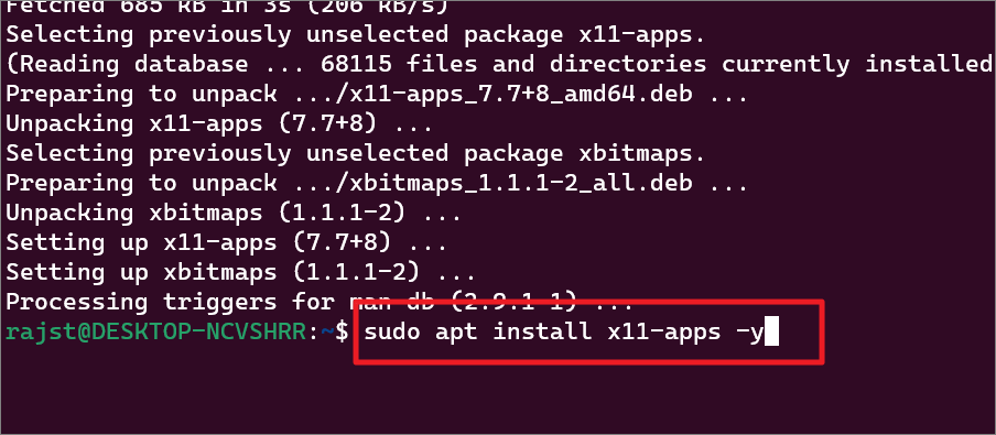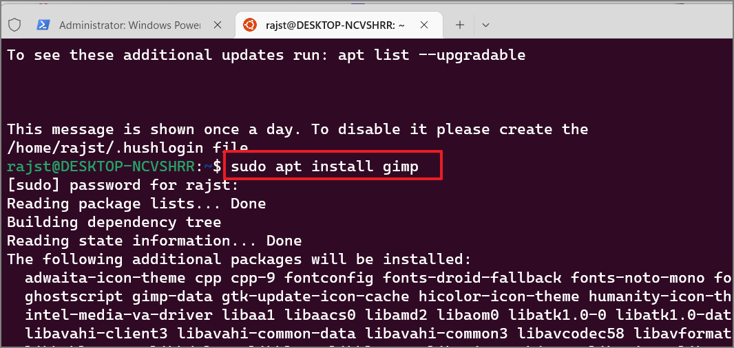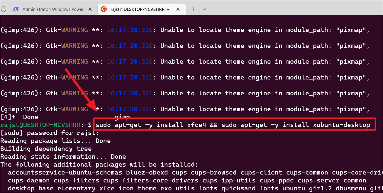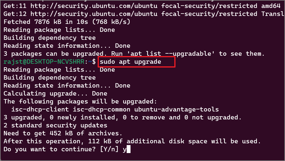 sudo apt upgradeThen, execute the following command to install the Win-Kex desktop environment and press Enter: