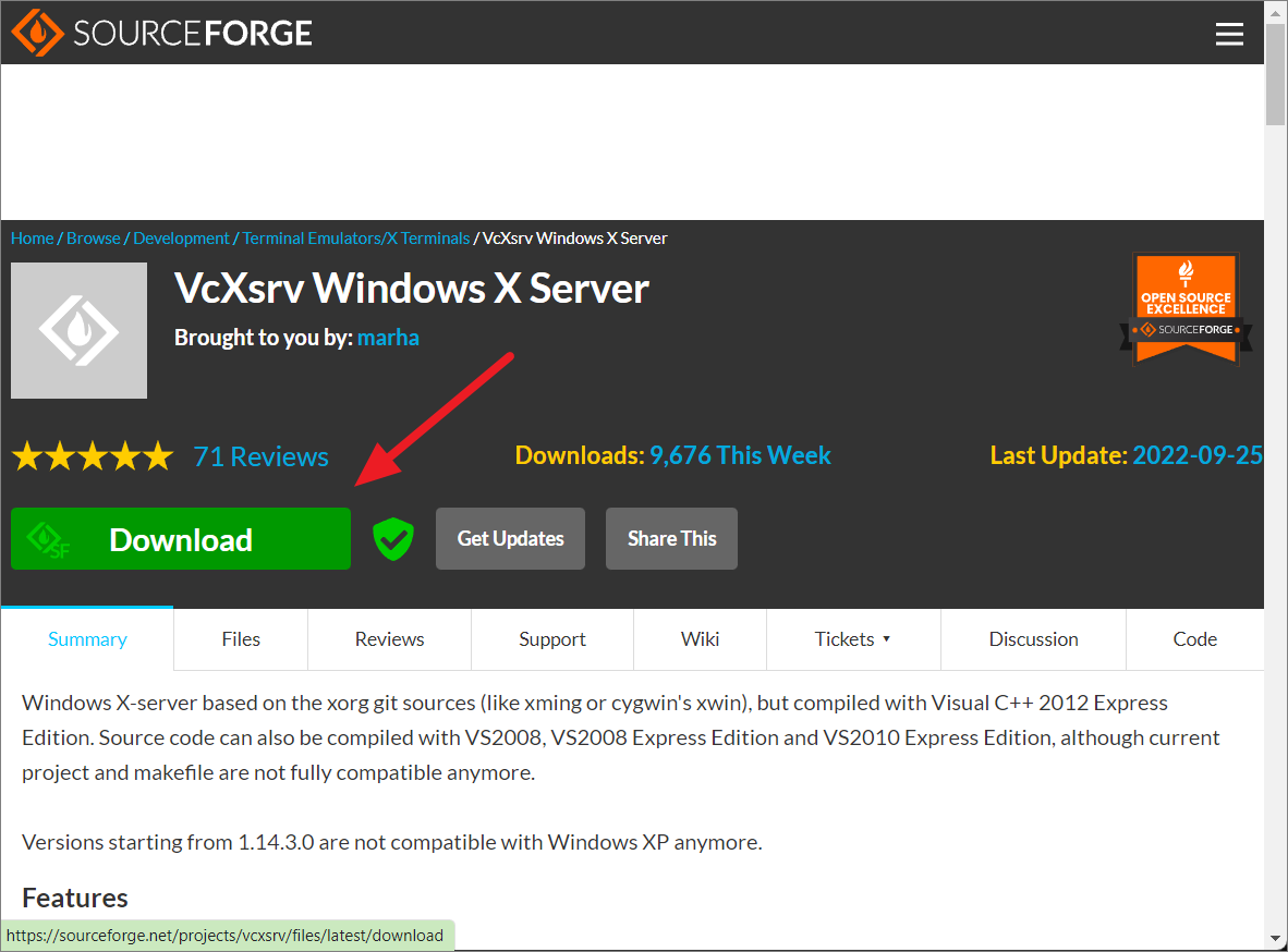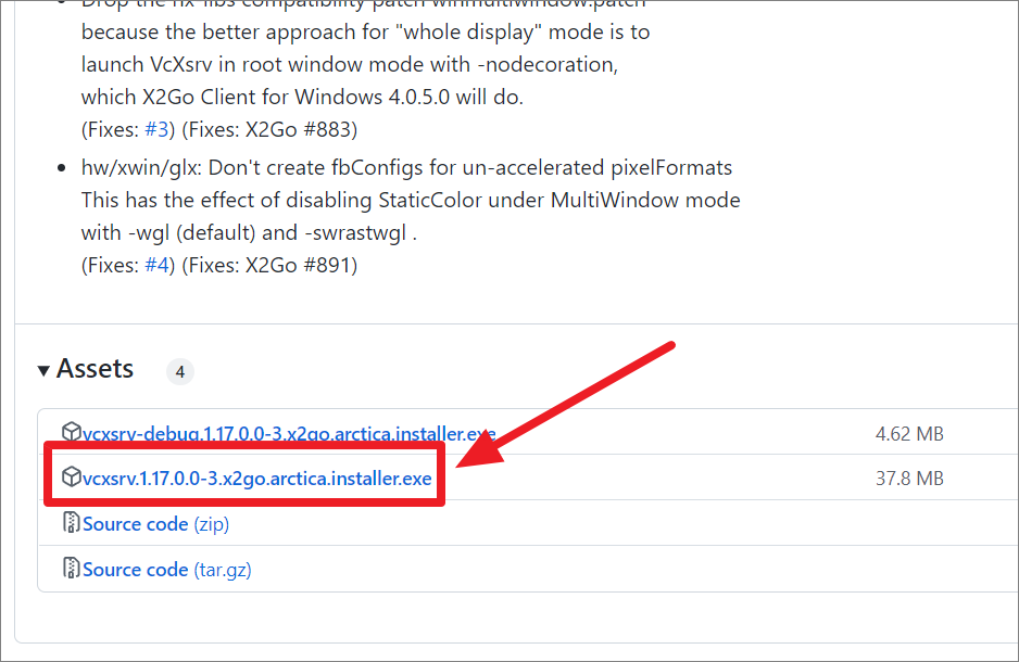 Alternatively, you can also go to the GitHub page of VcXsrv server and download the latest version of the app.