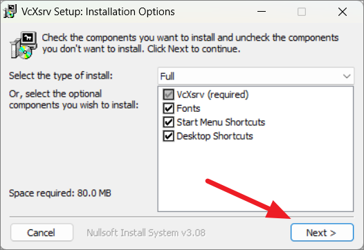 After the software is downloaded, run the setup. Then choose ‘Full’ from the ‘Select the type of install’ drop-down menu and click ‘Next’.