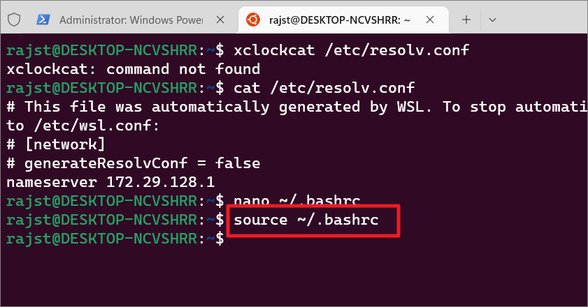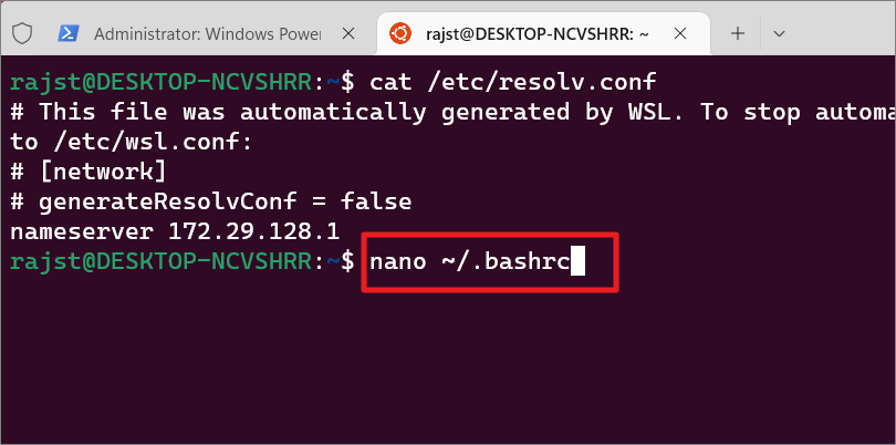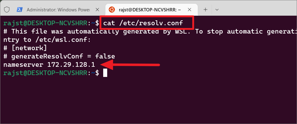 cat /etc/resolv.confIf the server is running, you will get an IP address. Now, note down the IP address you got from this command. (e.g., 172.29.128.1)