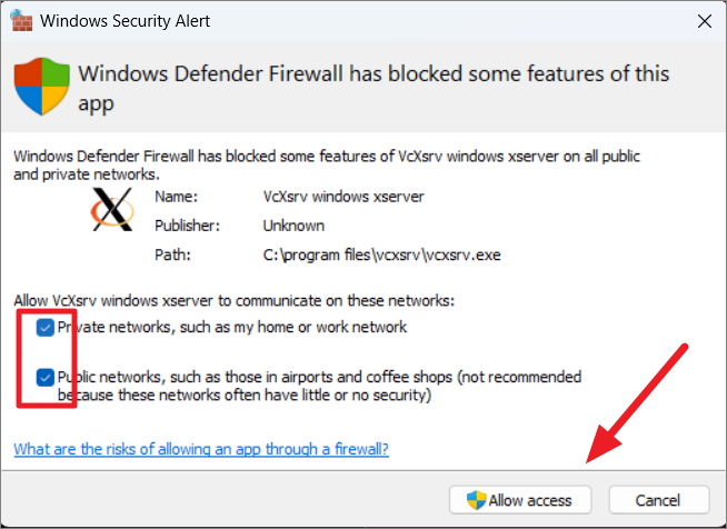 If you see the Windows Security Alert prompt, make sure to select both options and click ‘Allow access’.