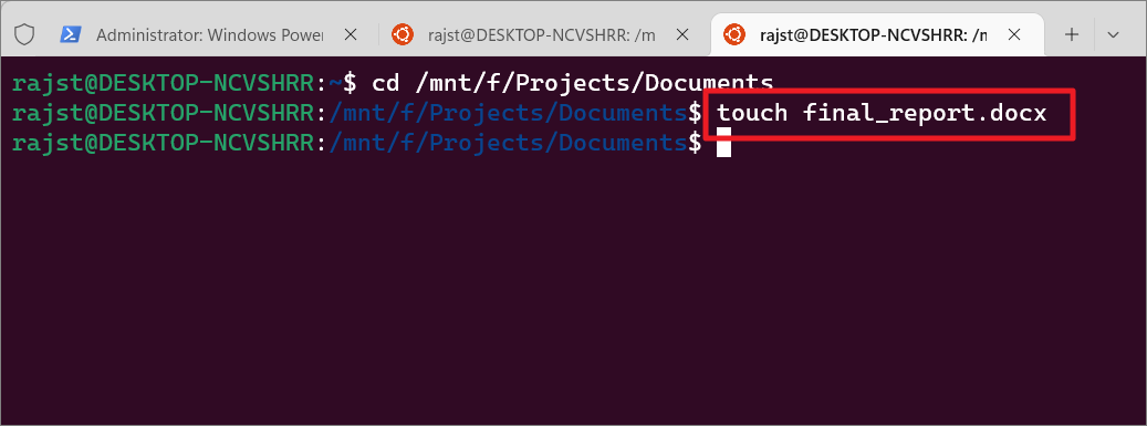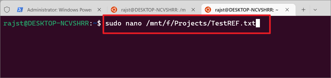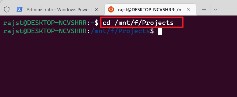 alias <alias name>='<command>'Example: Creating an alias for cp /home/rajst/Test.bas /mnt/f/Projects command: