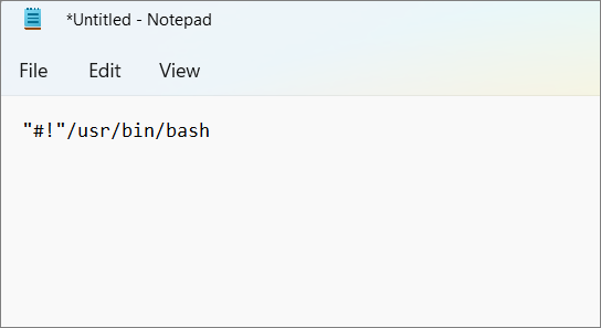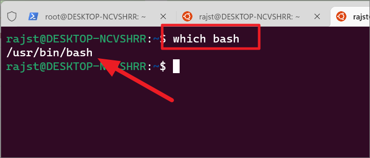 Open your favorite text editor like Notepad and create a new text file. The first line of the script must be “#!” followed by the path of your Linux bash. To find the path of your Linux bash, open the Ubuntu terminal and run which bash. This will show you the Bash path. Note down or copy it.