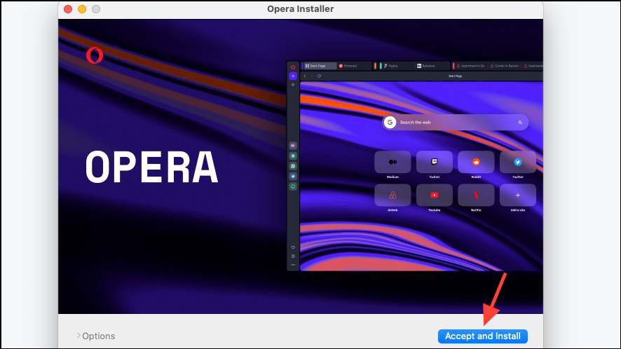 - Click on 'Accept and Install' and then follow the instructions on your screen to install the browser.