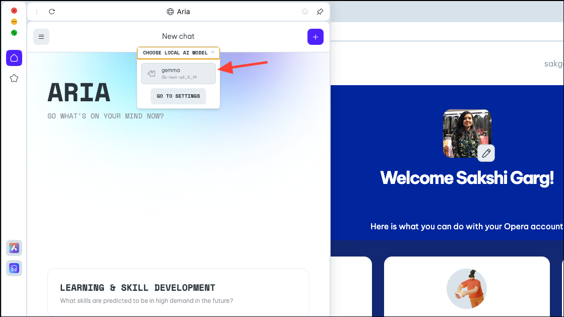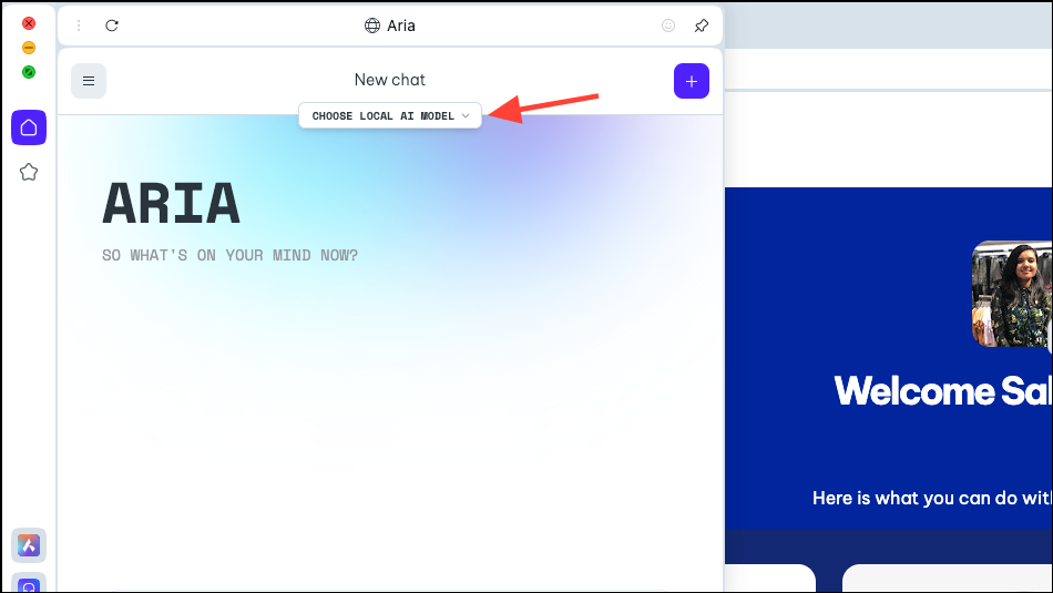 - Now, in the Aria panel, you'll see an option, 'Choose Local AI Model'. Click on it.