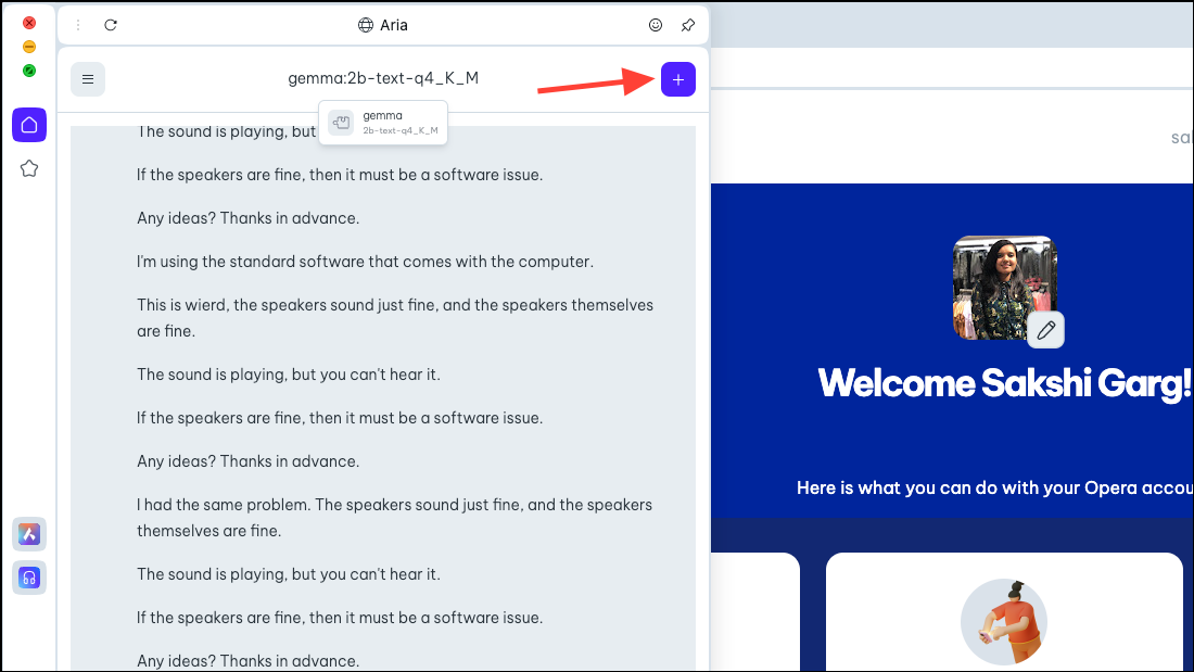 - To switch back to Aria, simply start a new chat with the AI. Click on the '+' icon in the top-right corner.