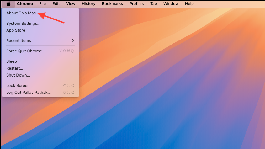 Step 1: To check your macOS version, click the Apple menu in the top-left corner, select About This Mac, and verify your macOS version.