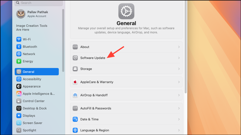 Step 2: If necessary, update your system by navigating to System Settings > General > Software Update and installing the latest available update.