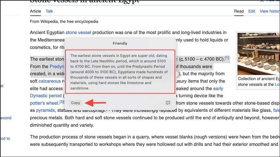 Step 2: Once the assistant generates the summary or organized content, you can copy it or replace your original text directly within the app.