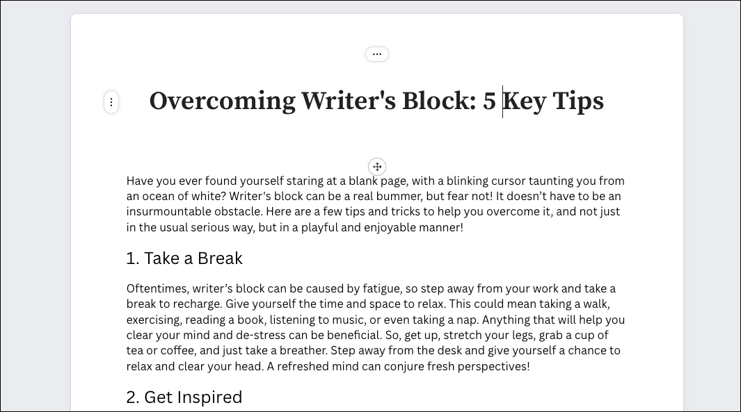 - Canva will open it in a different tab. Since we used Magic Switch to transform the presentation into a blog post here, Canba's AI even rewrote the copy and added appropriate parts, like an introduction and a conclusion, to make it a compelling blog post.