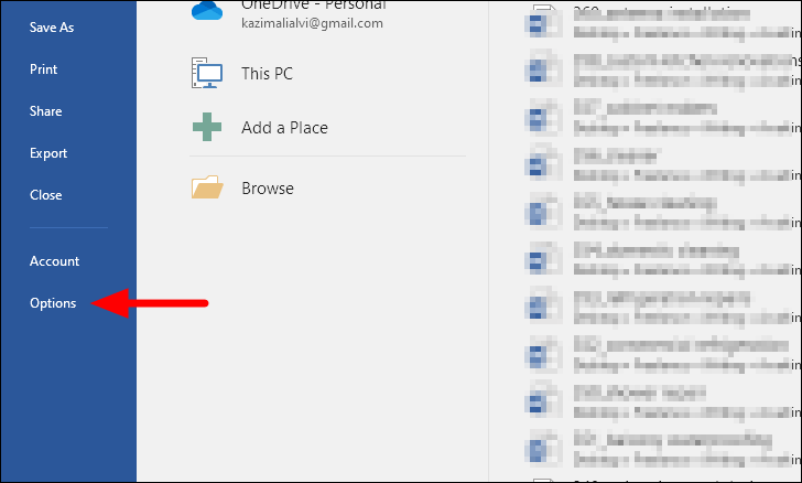 You will now find various choices on the left, select ‘Options’, the last one on the list.