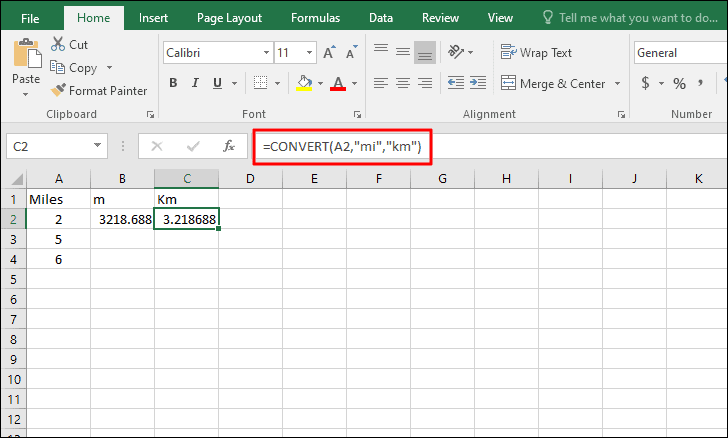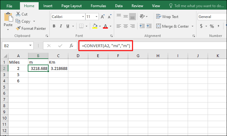 For instance, you want to convert ‘Miles’ to ‘Metres’. The formula for the conversion would be as follows.