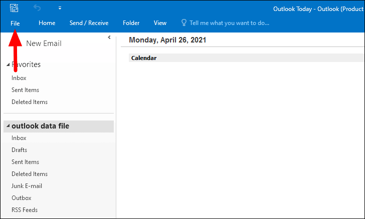 To enable measurement converter, launch Outlook and click on the ‘File’ menu in the ribbon.