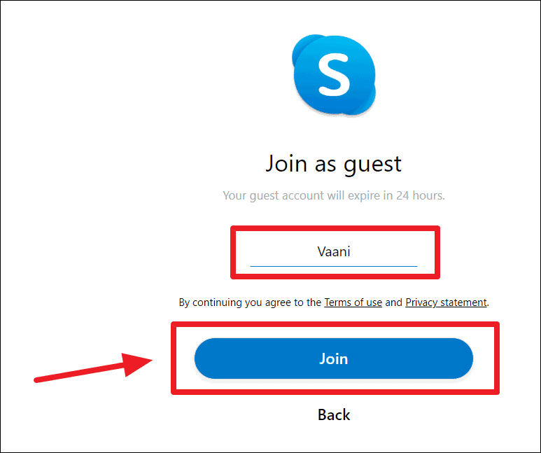 If you choose not to open the meeting in the Skype app and are not signed into the Skype web app, you can still join the meeting as a guest without a Skype account.