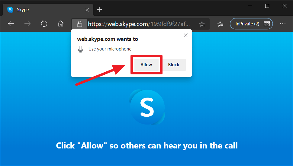 If your browser hasn't been granted permission to access your camera and microphone, a pop-up will appear below the address bar requesting access. Click 'Allow' to enable audio and video during the meeting.