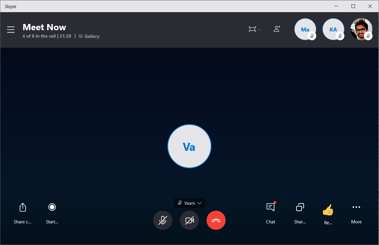 Once the meeting starts, the 'Meet Now' screen will display the video feeds or profile pictures of all participants who have joined.