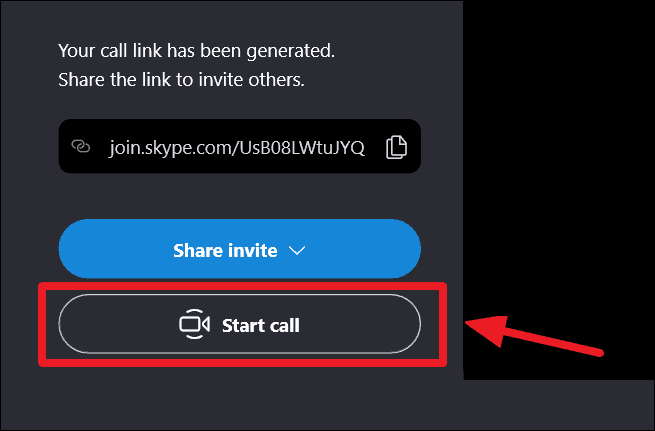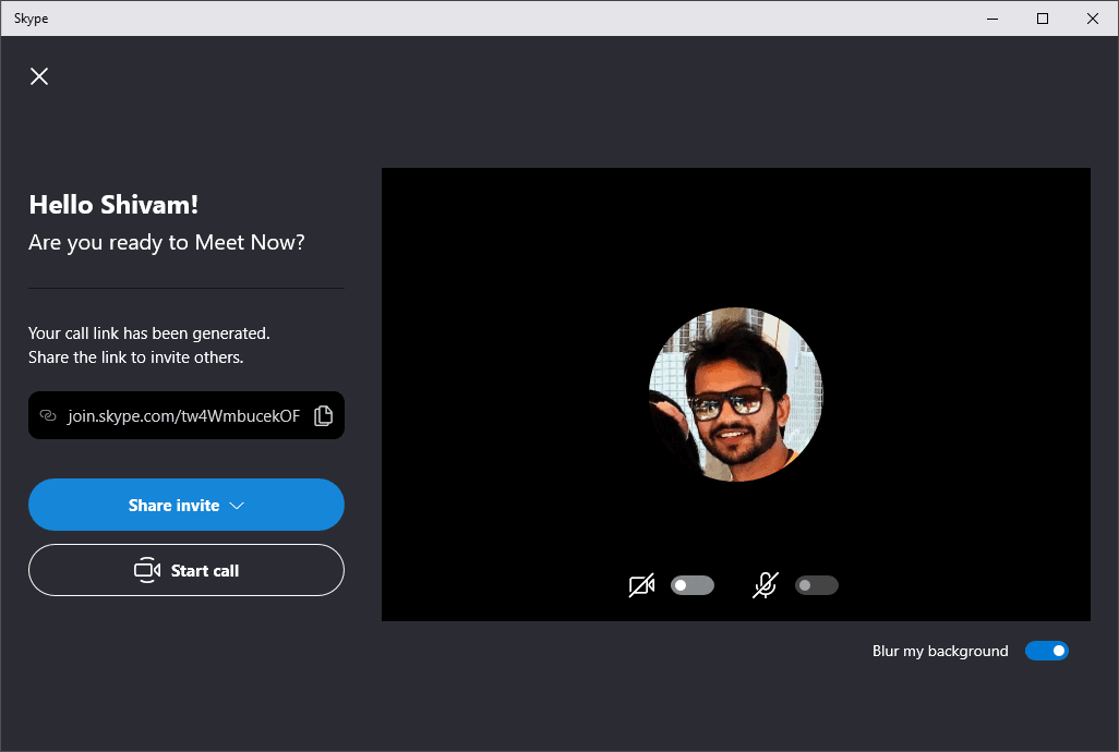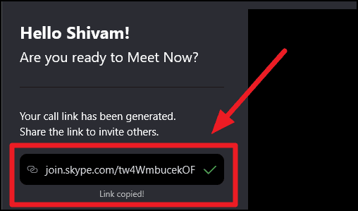 Step 4: Skype will generate a new meeting and display the invitation link on the left side of the screen.