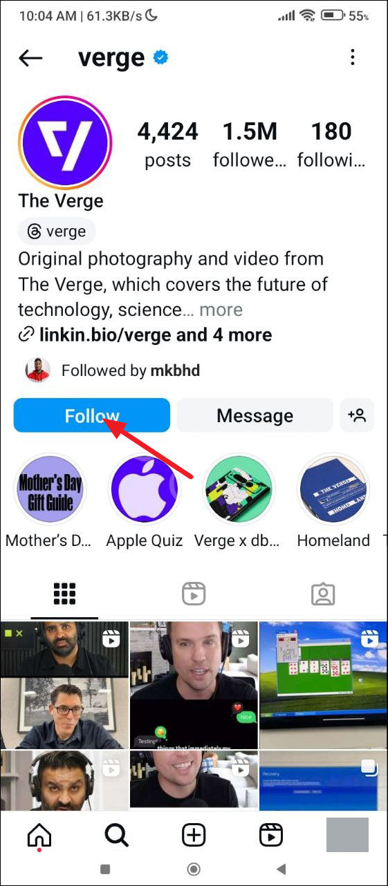 - Finally, tap on the name of the account and then on the 'Follow' button to follow them on the platform.