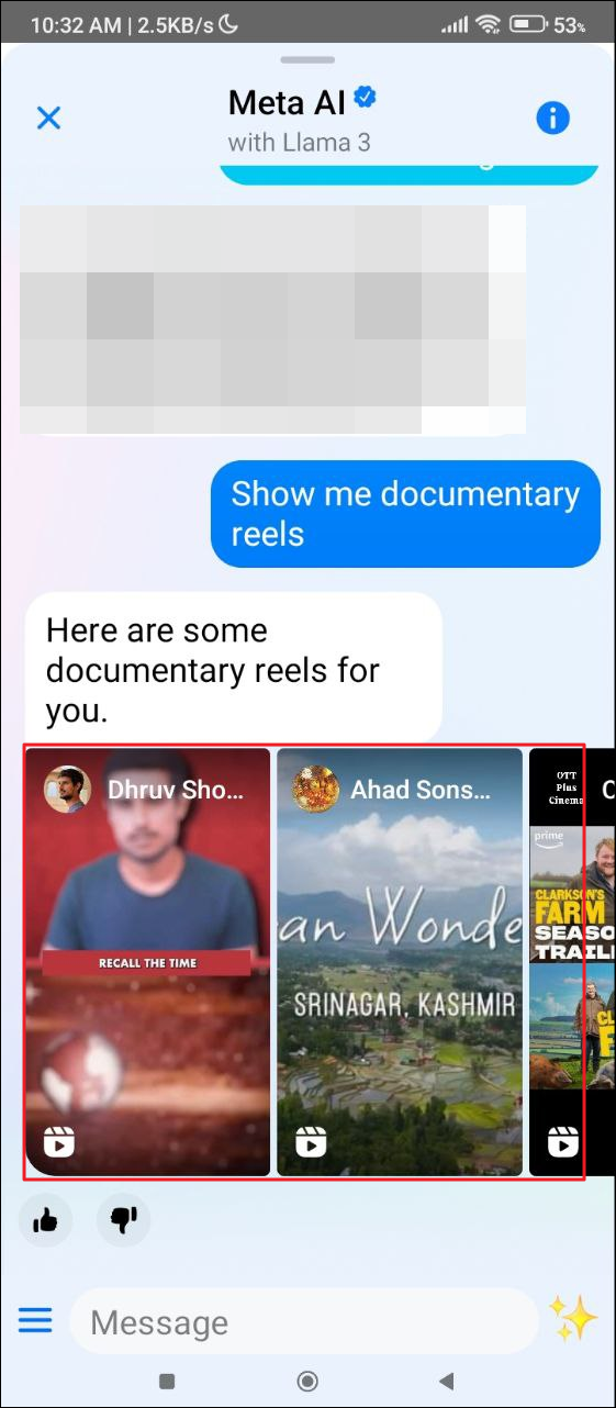 Another way by which you can use Meta AI to find interesting stuff on Instagram is to ask it to show you Reels.