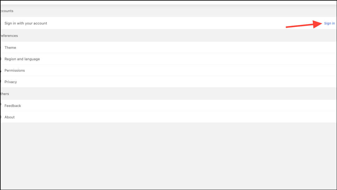 Step 5: To sign in, click on Sign in located at the top-left corner of the app.