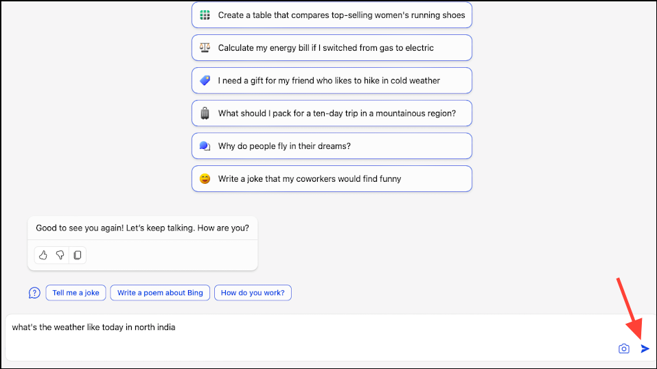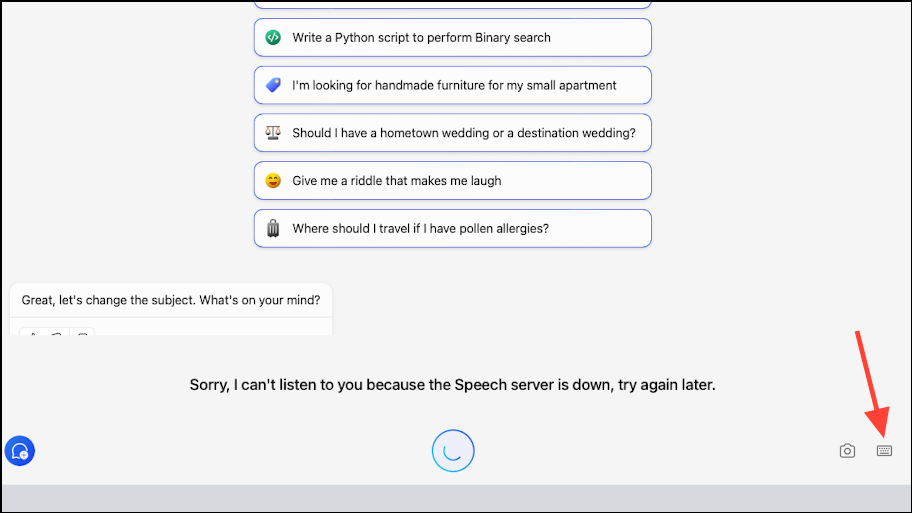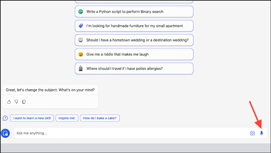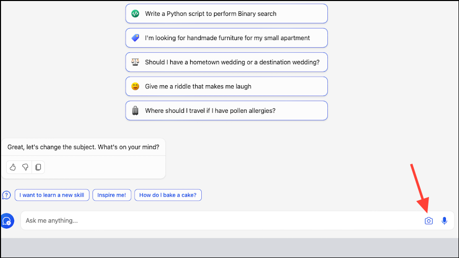 Step 9: You can also upload images to Copilot and ask questions about them. Click the Camera icon and grant the necessary permissions to access your camera.