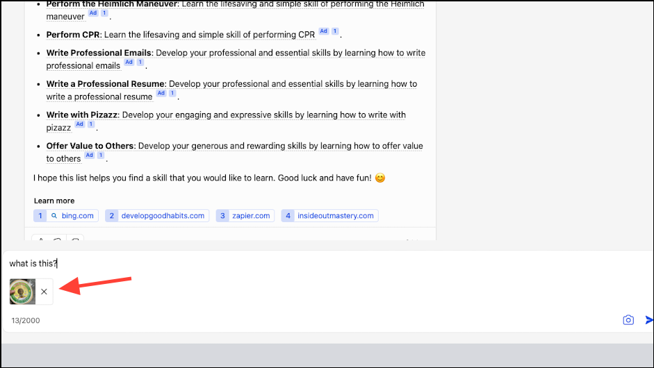 Step 11: Once the image is uploaded, type or speak your question related to the image and send it to Copilot.