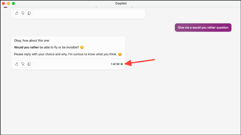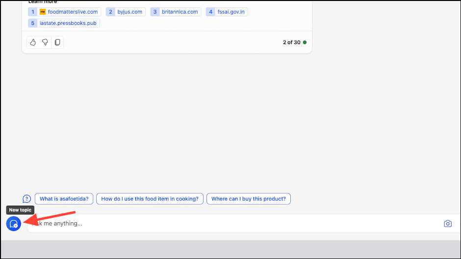 Step 3: You can continue the conversation for up to 30 responses before needing to reset the chat.