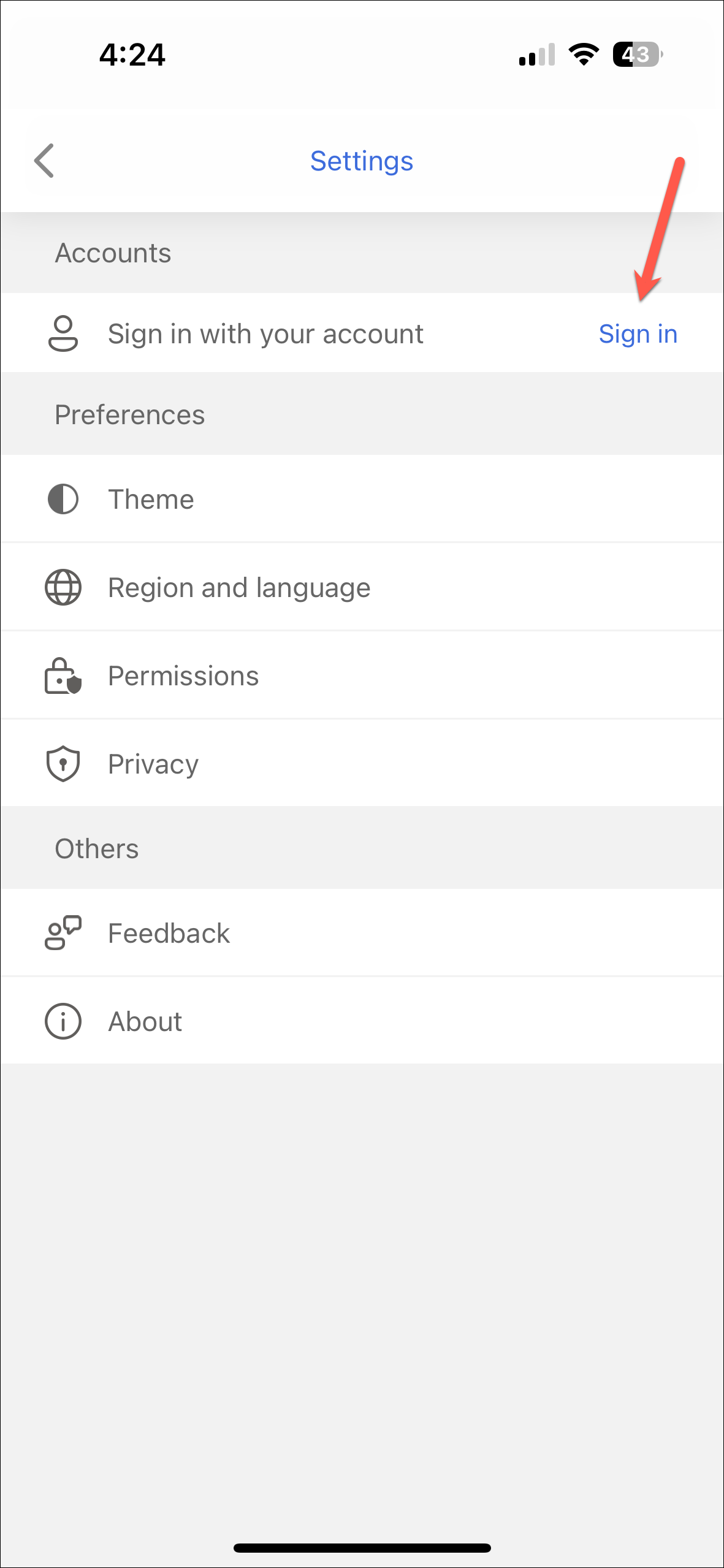 - Then, you can log in to your Microsoft account by tapping on 'Sign in' again.