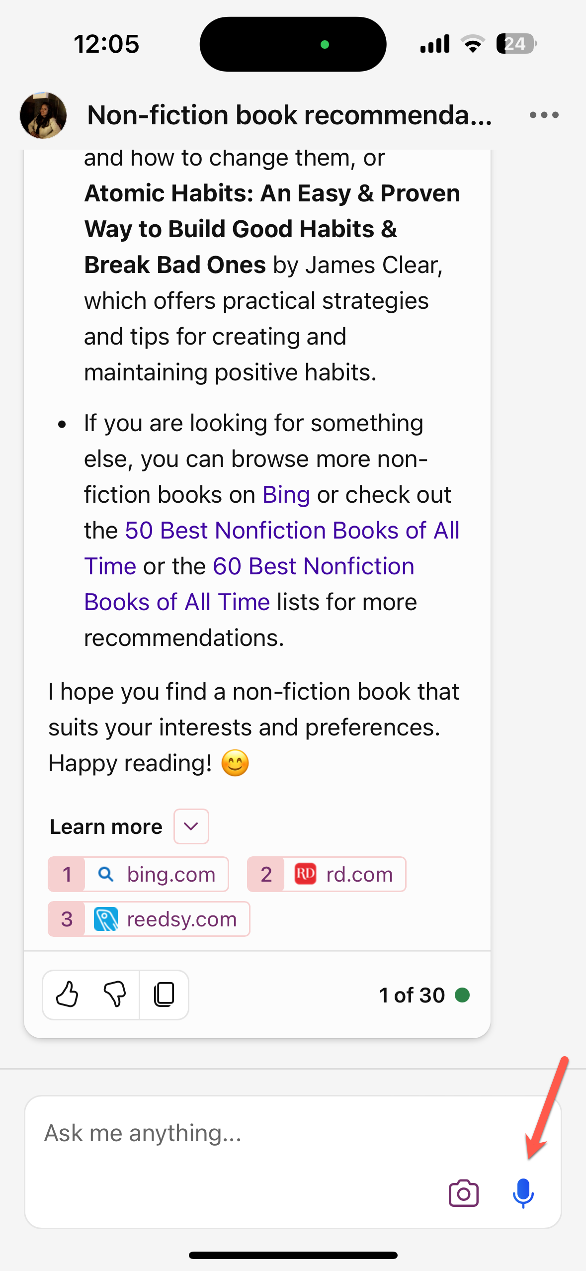 That's all there is to it. Microsoft Copilot provides a powerful AI assistant that you can access on the go on your mobile phone. You can chat with Copilot using text, voice, or images and get answers about anything.