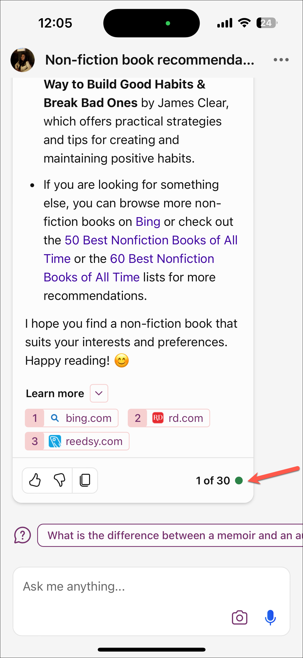 - You can continue chatting with Copilot for around 30 more responses, and it will retain the context. After that, you will have to start a new chat with Copilot.