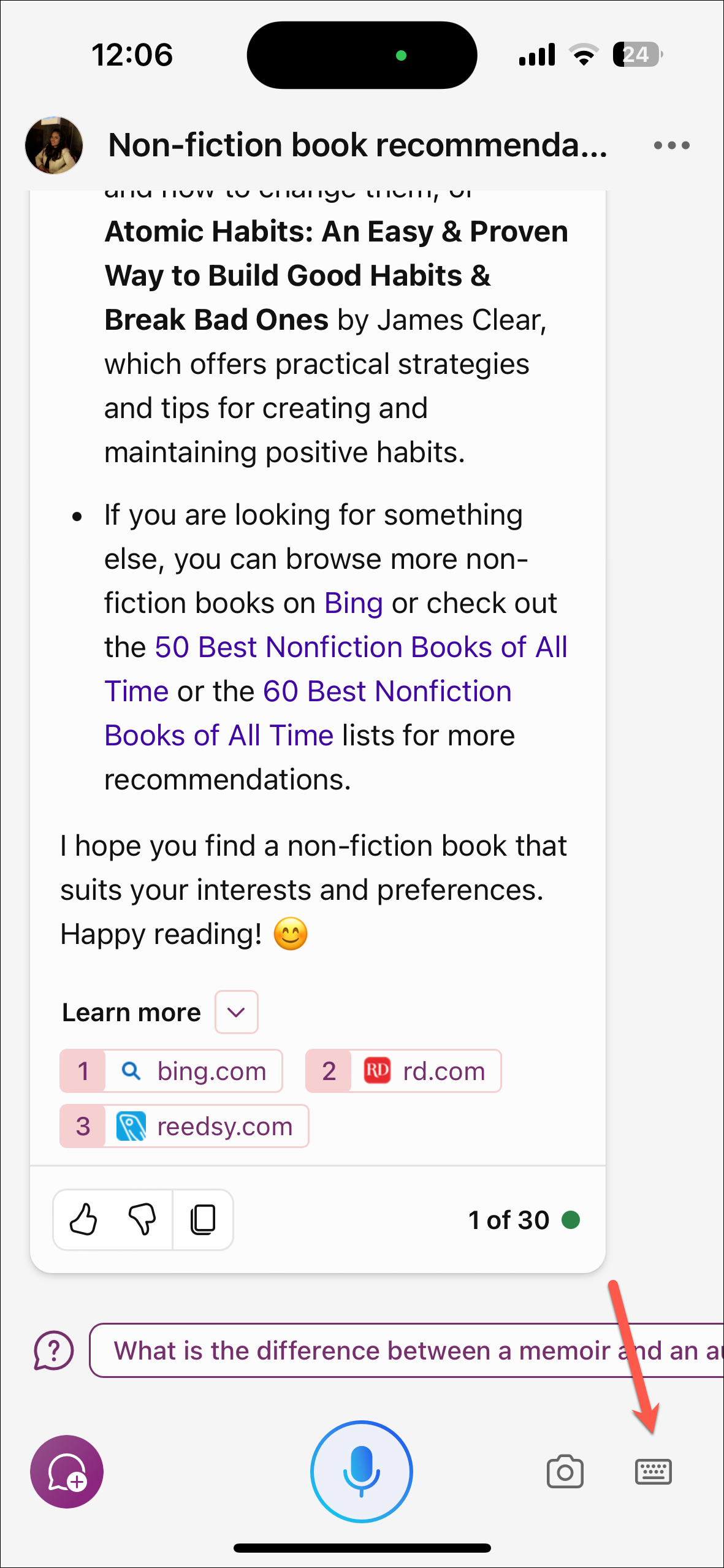 - Voice: You can also use voice commands to interact with Copilot. Tap the microphone icon and speak your question or request. Copilot will then listen to you and provide you with a response. You cannot "speak" with Copilot like you can with ChatGPT. The voice option only lets you speak your queries instead of typing them.