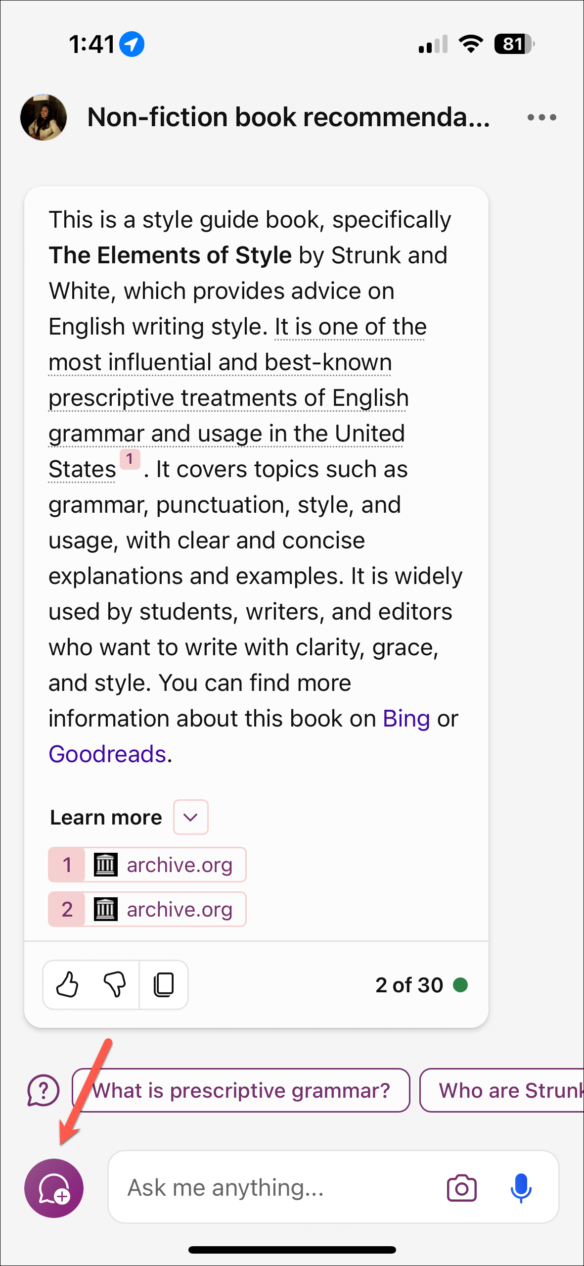 - If you want to change the tone or the GPT model, you can only do that at the start of a new chat.