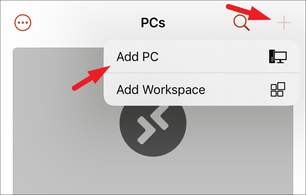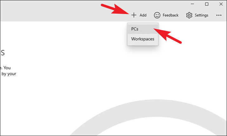 Step 5: Click on the '+' (Add) button and select 'PCs' to add a new remote connection.