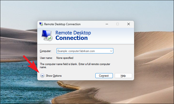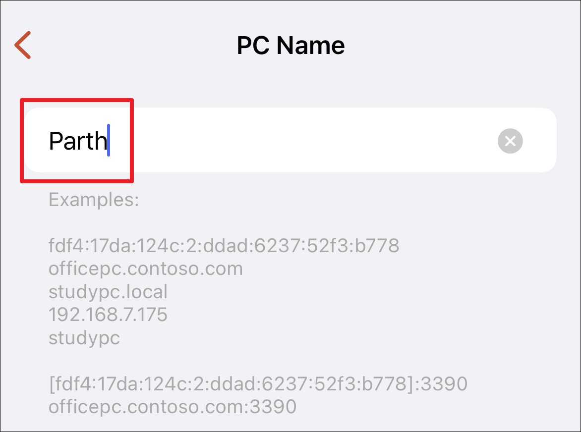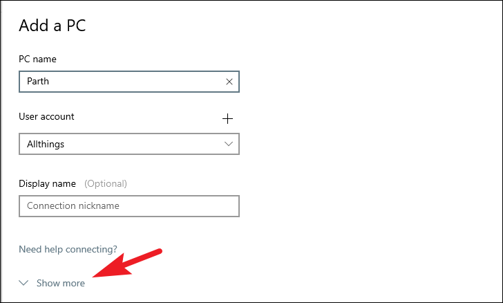Step 2: In the 'PC Name' field, enter the name or IP address of your Windows 11 PC.