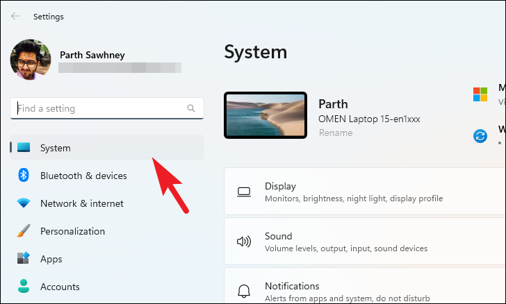Step 5: Return to the 'System' tab by clicking on it in the left sidebar.