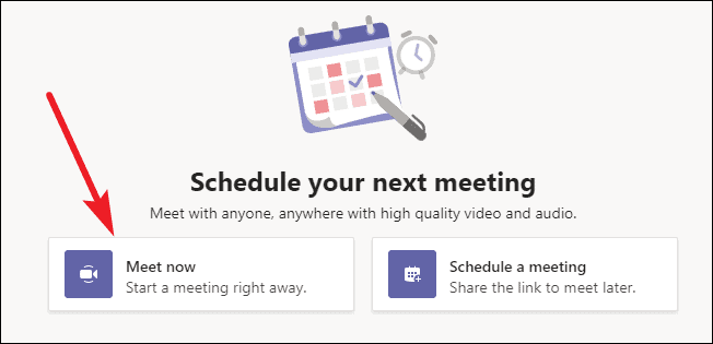 Step 3: In the Meetings screen, click the 'Meet now' button to initiate an instant private meeting.