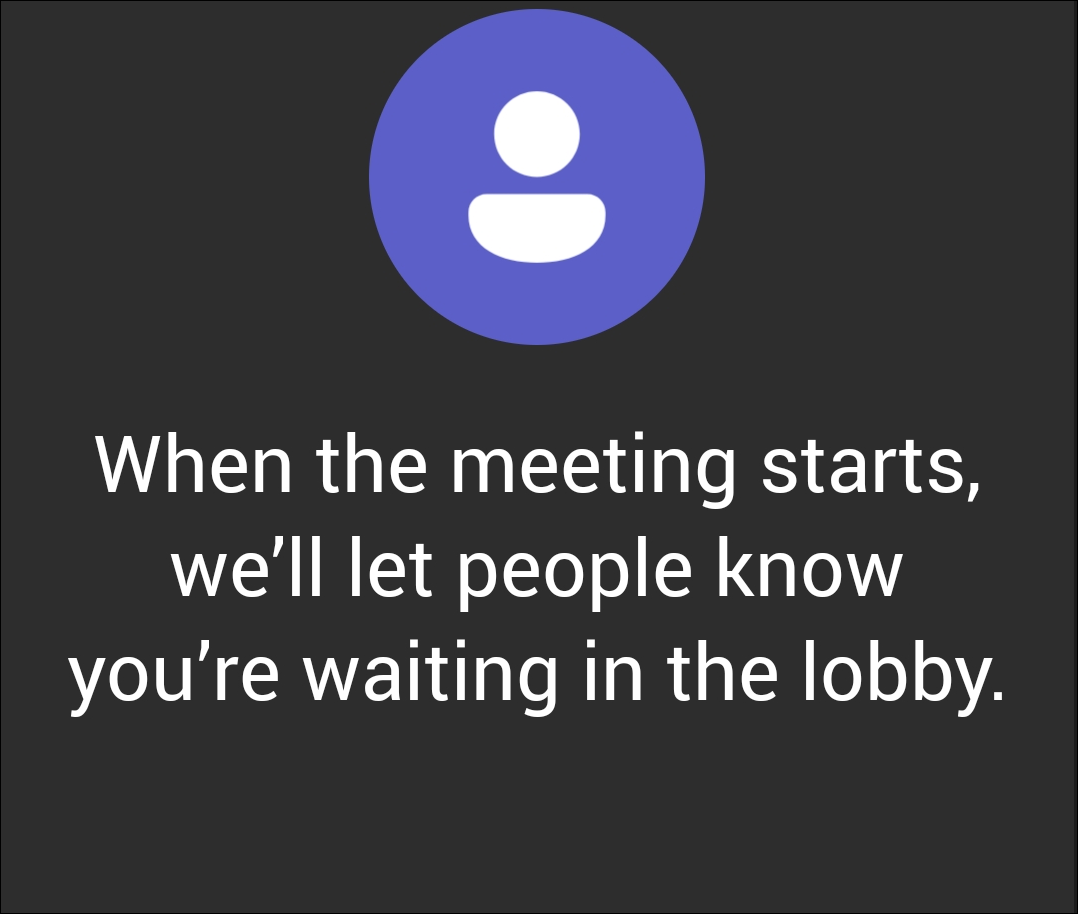 You’ll enter the meeting lobby. The meeting organizer will get a notification that you’re waiting in the lobby. You’ll enter the meeting as soon as the organizer lets you in.