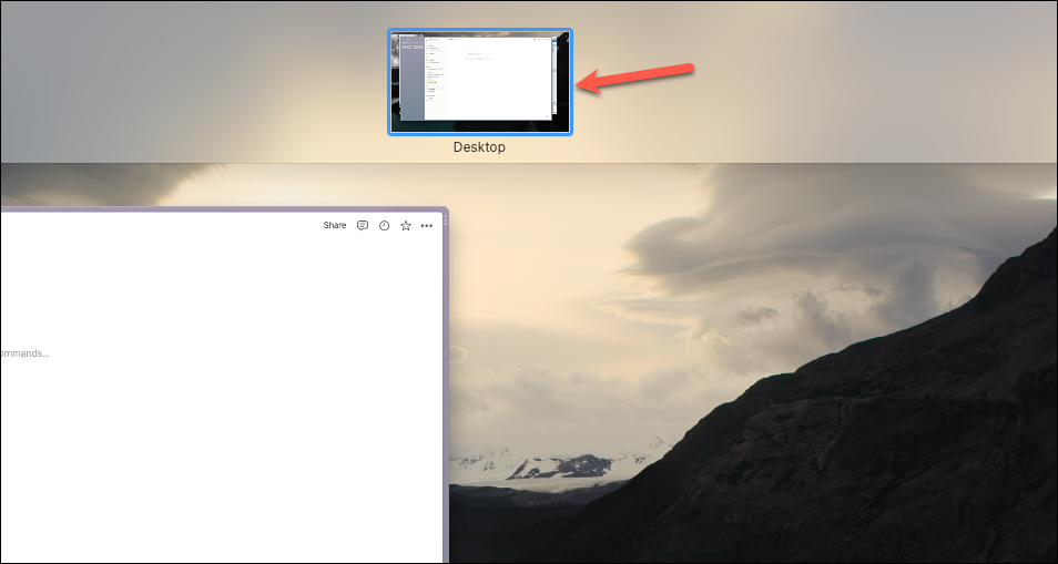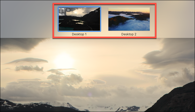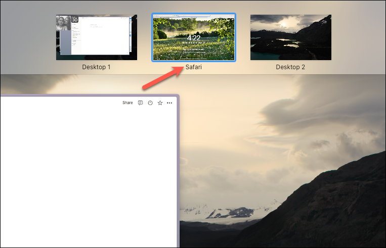 Once in Mission Control, your open windows appear as thumbnails. At the top of the screen, the Spaces Bar displays thumbnails of your desktops. If it's not visible, move your cursor to the top edge to reveal it.