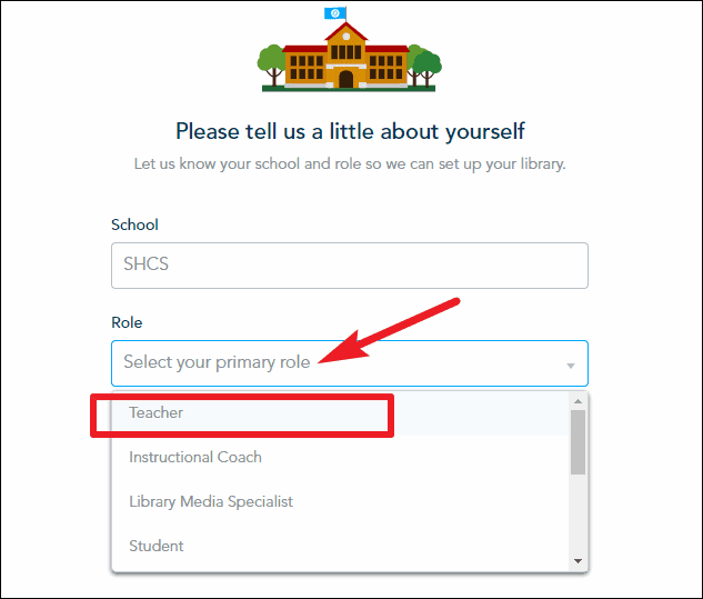 Enter your name and email address to get started. Then, enter the name of your school, and select your role – in this case, teacher. Then, click on ‘Done’.