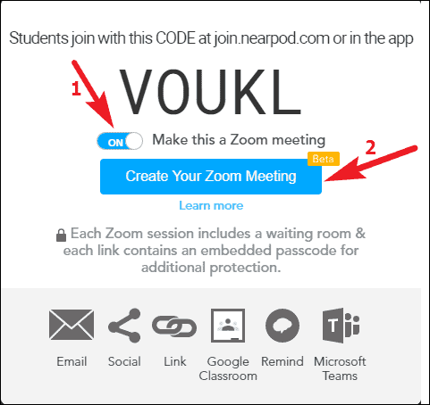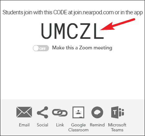 You don’t need to create a meeting room separately and share the link for both the Nearpod lesson and the meeting room with your students. Instead, a single code would work for both.