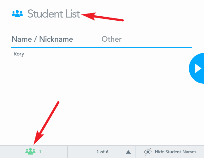 The first slide of the lesson will be an additional slide that will show the list of students who have joined the lesson. When all the students have joined, you can move to the next slide (technically the first slide you created in the lesson), and the lesson will start on the students’ screens.