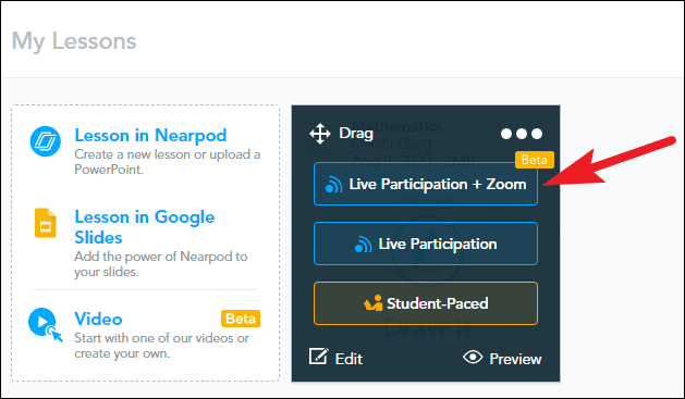 On the dashboard, click the ‘Live Participation + Zoom’ option on the lesson.